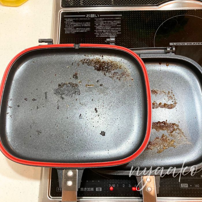 心配していた「水分の漏れ」については、確かにひっくり返す角度やタイミングに少しコツがいりますが、慣れてしまえばグリルを丸洗いする手間に比べれば、なんてことありません。