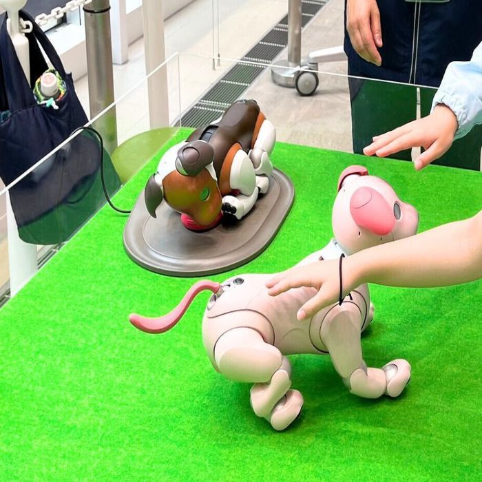 私たちが行った時はアイボ25周年という事で1階に年代別のアイボがズラリと飾られていました。
