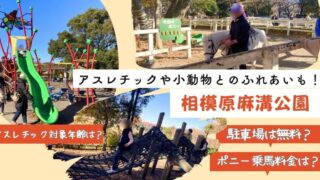 お出かけ 【相模原麻溝公園】フィールドアスレチックやふれあい動物広場での乗馬体験レビュー 相模原市立麻溝公園は、小学生対象のアスレチックが25コースもあり、ふれあい動物広場では小動物を触ったり餌やり体験や、ポニーの乗馬体験もできます!こちらの記事ではフィールドアスレチックの紹介とポニー乗馬料金、駐車料金などについてまとめています。 2025.01.07 お出かけ